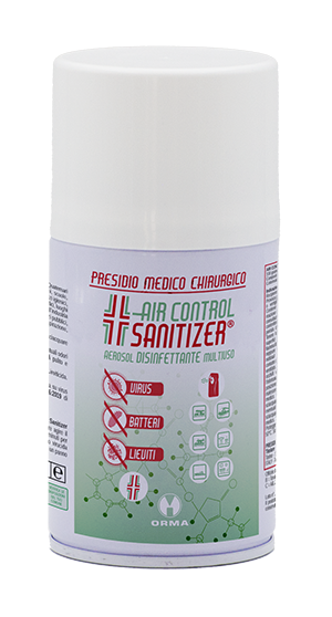 Air Control Sanitizer® è un DISINFETTANTE AEROSOL PRONTO USO a base di sali quaternari d’ammonio per ambienti, oggetti e superfici.