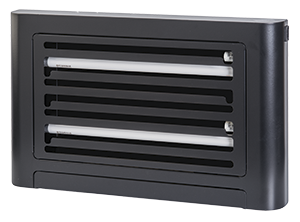 Fly Barrier attira gli insetti con 2 lampade fluorescenti da 15W a luce ultravioletta e li cattura grazie alla speciale piastra collante di grandi dimensioni.