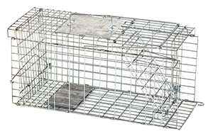 Trappola in rete metallica a doppio ingresso per la cattura non cruenta di ratti e piccoli animali. La maglia metallica 18x18 mm in filo zincato elettrosaldato non consente la fuga a cattura avvenuta.