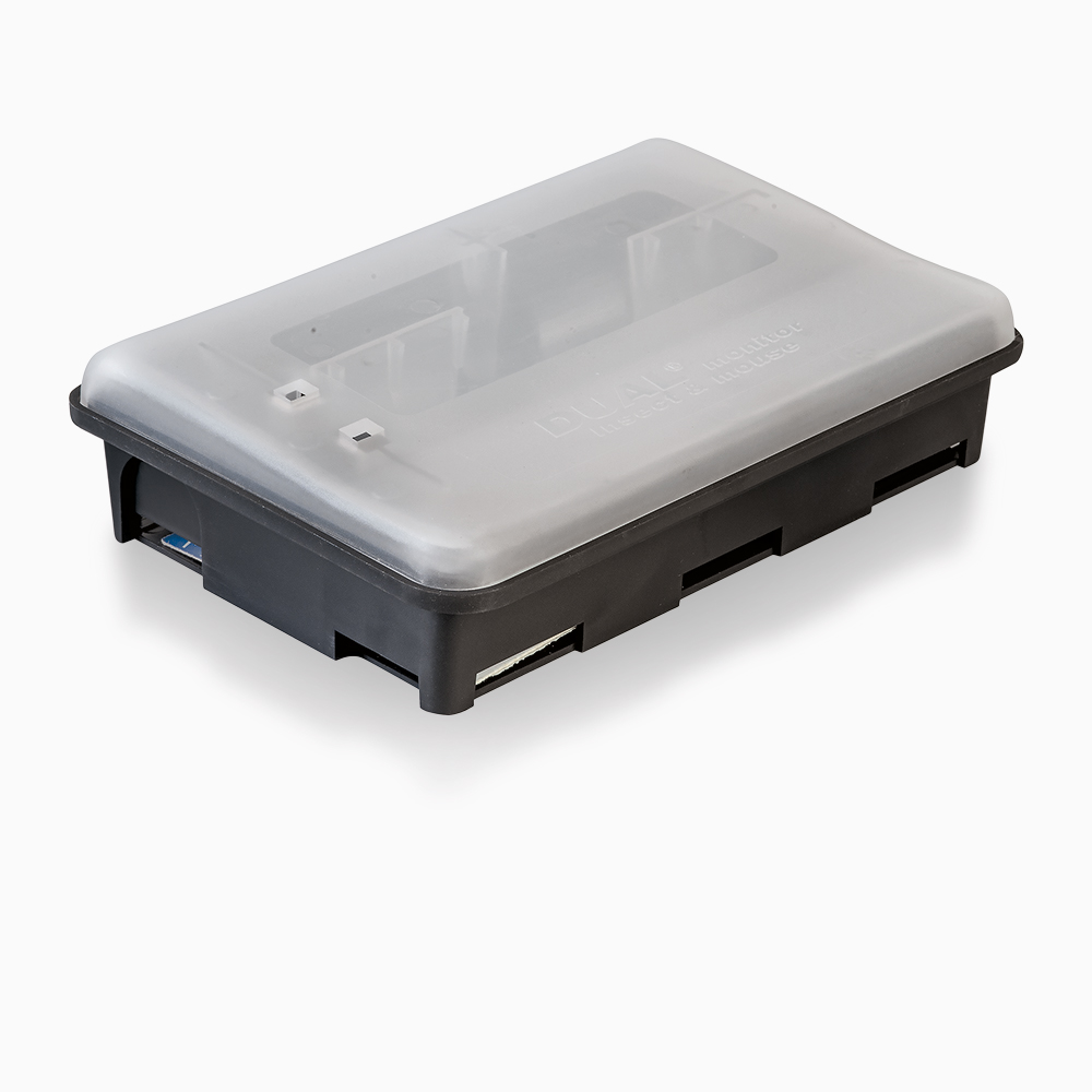 Dual Monitor è il box di sicurezza per il monitoraggio di topi e insetti striscianti tramite piastra collante o erogatore di esca rodenticida. Realizzato per essere molto robusto ed inattaccabile da agenti atmosferici.
