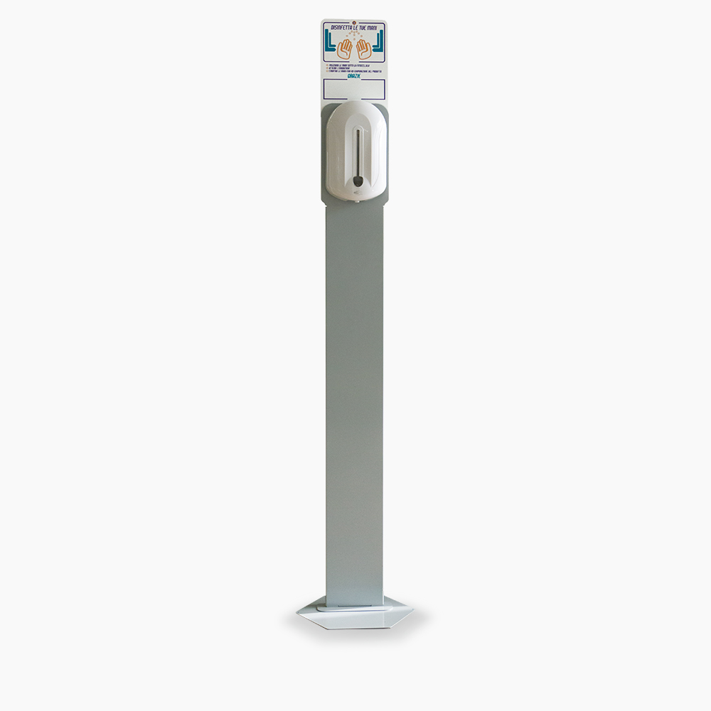 La piantana permette di creare una postazione sanificante “TOUCH FREE”: i dispenser evitano il contatto tra le mani e oggetti estranei, in questo modo si elimina una possibile ricontaminazione ambientale delle mani, massimizzando l’azione disinfettante.